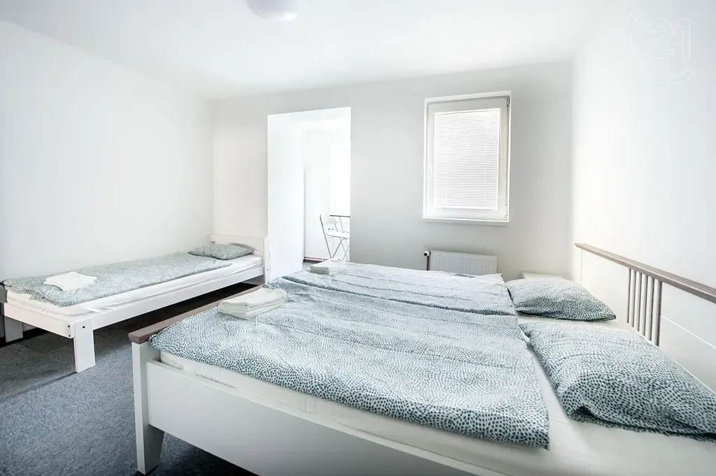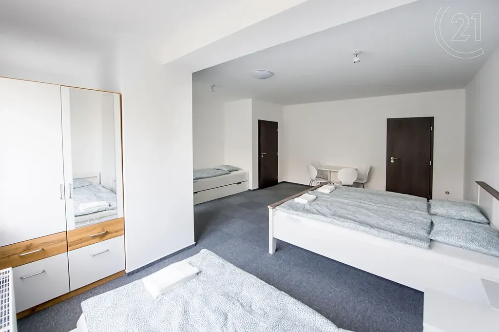 Nabízíme vám k prodeji řadový rodinný dům v Mostě Souši. Dům je po celkové rekonstrukci upravený na ubytovací zařízení. Je zateplený, má čtyři nadzemní podlaží. Výměra parcely je 279 m², vnitřní užitná plocha je 312 m². Nemovitost disponuje 26 lůžky. V prvním nadzemním podlaží jsou vybudovány dva apartmány (čtyřlůžkový a třílůžkový). Oba apartmány mají koupelnu a WC. V třílůžkovém apartmánu je i kuchyňská linka a má venkovní terasu s přístupem na zahradu. V druhém nadzemním podlaží jsou čtyři pokoje: dvoulůžkový, třílůžkový (tyto pokoje mají společné WC a koupelnu). Dále jsou tu dva třílůžkové pokoje s vlastní koupelnou i WC. Ve třetím nadzemním podlaží se nacházejí tři pokoje. Jeden je dvoulůžkový, zbývající dva jsou třílůžkové. Tyto pokoje mají společnou terasu. Na tomto patře je společná kuchyně a jsou tu dvě koupelny s WC. V přízemí se nachází garáž, tři místnosti, technická místnost a prádelna. Tato nemovitost má polohu na okraji Mostu, přímo naproti vjezdu do autodromu. Nedaleko je nádrž Matylda, která nabízí spoustu volnočasových aktivit, blízko je to i k mosteckému jezeru a na hrad Hněvín. Veškerá občanská vybavenost je v centru města, které je poblíž. Nemovitost je vhodná jako investice s velkým potenciálem, prodává se včetně vybavení. Zavolejte si pro další informace nebo si rovnou domluvte prohlídku. S případným financováním vám rádi pomůžeme.