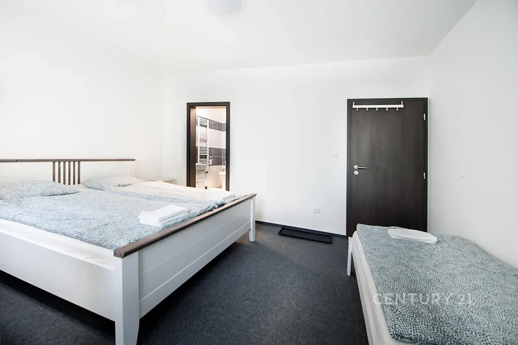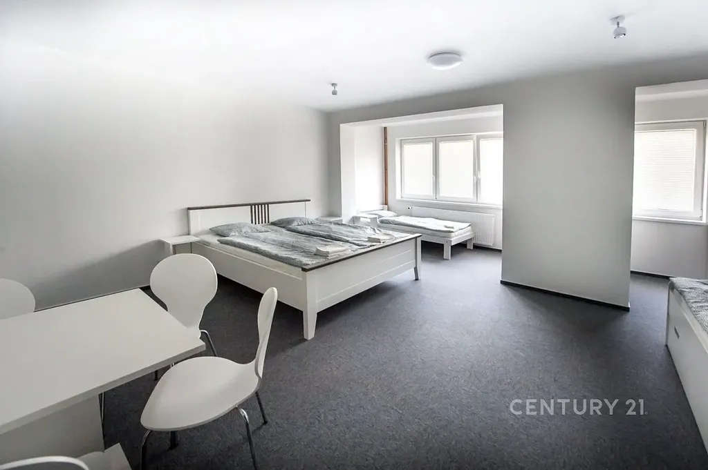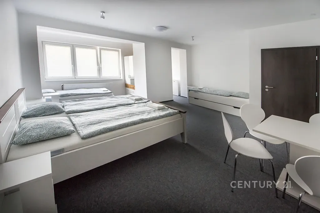 Nabízíme vám k prodeji řadový rodinný dům v Mostě Souši. Dům je po celkové rekonstrukci upravený na ubytovací zařízení. Je zateplený, má čtyři nadzemní podlaží. Výměra parcely je 279 m², vnitřní užitná plocha je 312 m². Nemovitost disponuje 26 lůžky. V prvním nadzemním podlaží jsou vybudovány dva apartmány (čtyřlůžkový a třílůžkový). Oba apartmány mají koupelnu a WC. V třílůžkovém apartmánu je i kuchyňská linka a má venkovní terasu s přístupem na zahradu. V druhém nadzemním podlaží jsou čtyři pokoje: dvoulůžkový, třílůžkový (tyto pokoje mají společné WC a koupelnu). Dále jsou tu dva třílůžkové pokoje s vlastní koupelnou i WC. Ve třetím nadzemním podlaží se nacházejí tři pokoje. Jeden je dvoulůžkový, zbývající dva jsou třílůžkové. Tyto pokoje mají společnou terasu. Na tomto patře je společná kuchyně a jsou tu dvě koupelny s WC. V přízemí se nachází garáž, tři místnosti, technická místnost a prádelna. Tato nemovitost má polohu na okraji Mostu, přímo naproti vjezdu do autodromu. Nedaleko je nádrž Matylda, která nabízí spoustu volnočasových aktivit, blízko je to i k mosteckému jezeru a na hrad Hněvín. Veškerá občanská vybavenost je v centru města, které je poblíž. Nemovitost je vhodná jako investice s velkým potenciálem, prodává se včetně vybavení. Zavolejte si pro další informace nebo si rovnou domluvte prohlídku. S případným financováním vám rádi pomůžeme.