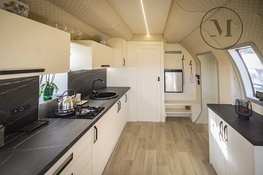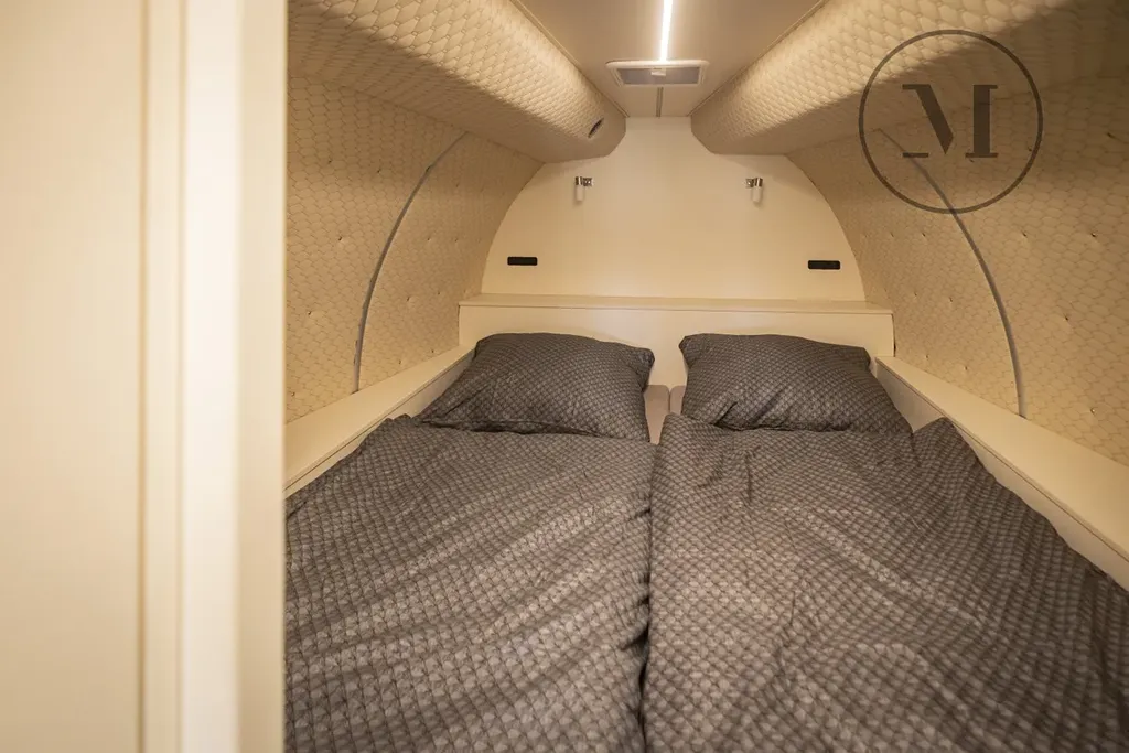 Zateplená obytná část s hrubými rozvody sítí a vnitřním opláštěním trupu. Prostor bez finálního rozdělení místností – připraveno k dokončení dle vašich představ.
