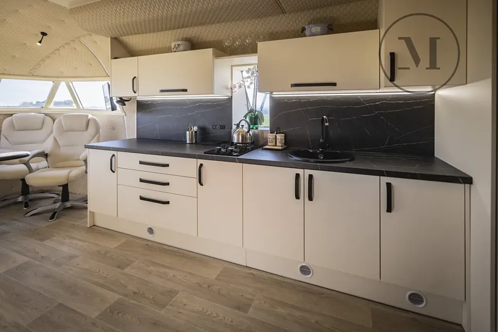 Plně dokončené obytné letadlo připravené k okamžitému využití. Cena nezahrnuje dopravu a instalaci na místo. Součástí je zaškolení k provozu.