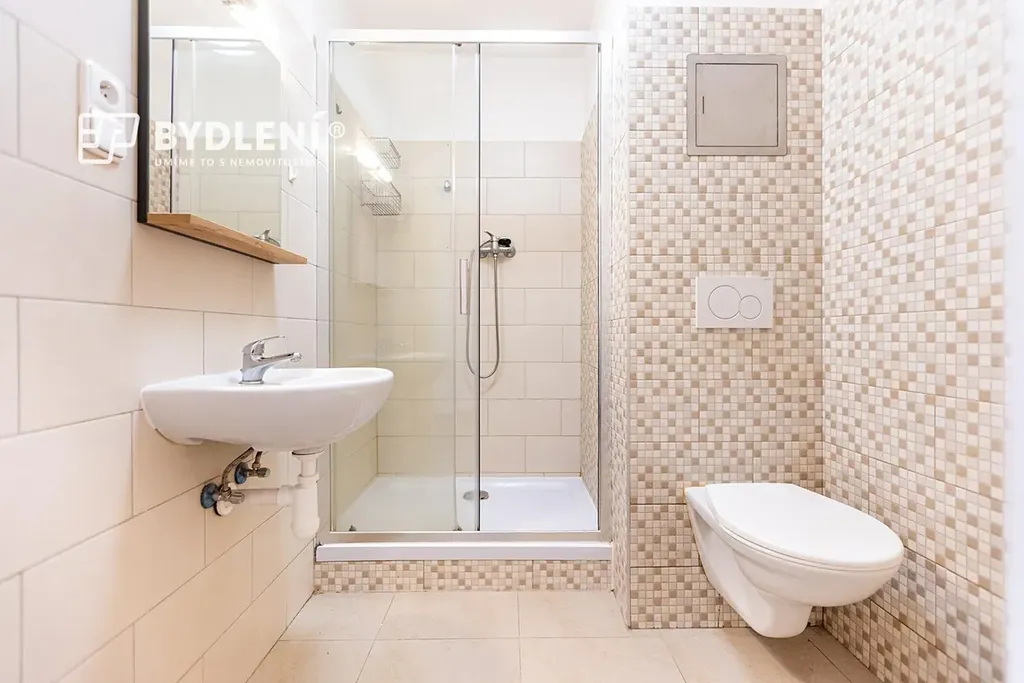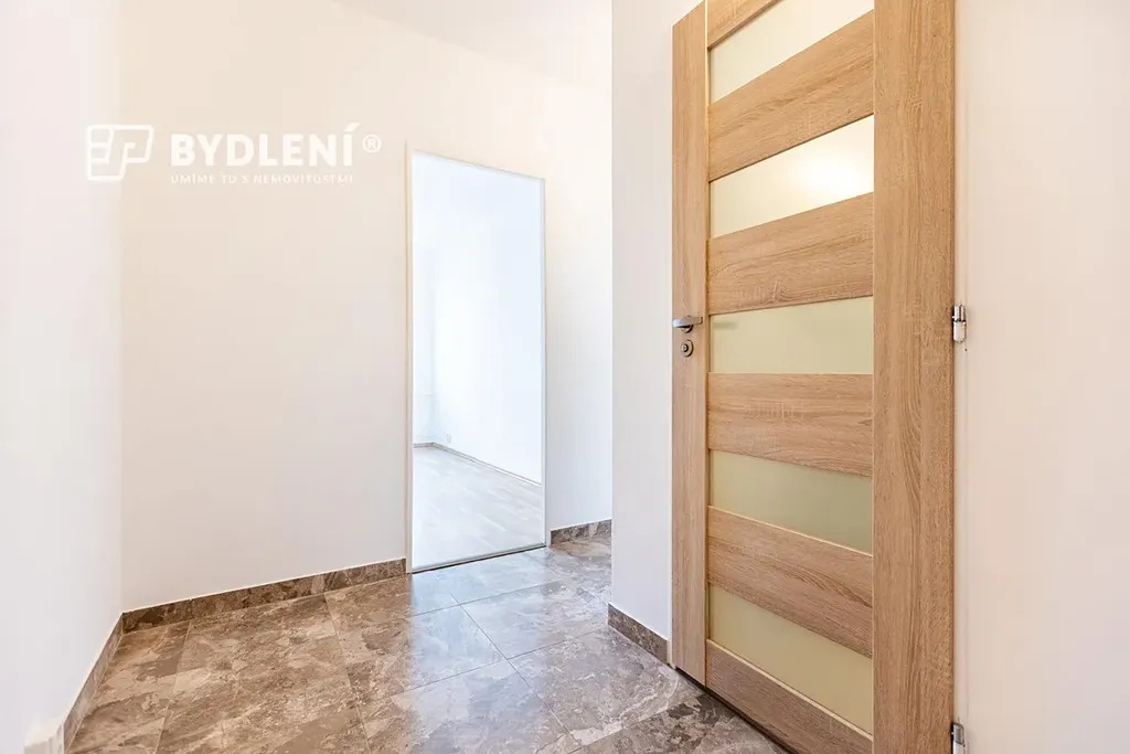 Byt je prakticky řešený. Vstupní chodba s dlažbou, koupelna zděná se sprchovým koutem a WC. Hlavní obytný prostor je propojen s kuchyňským koutem. Druhá místnost slouží jako ložnice. Dispozice je funkční jak pro vlastní bydlení, tak pro investiční využití (podnájem).