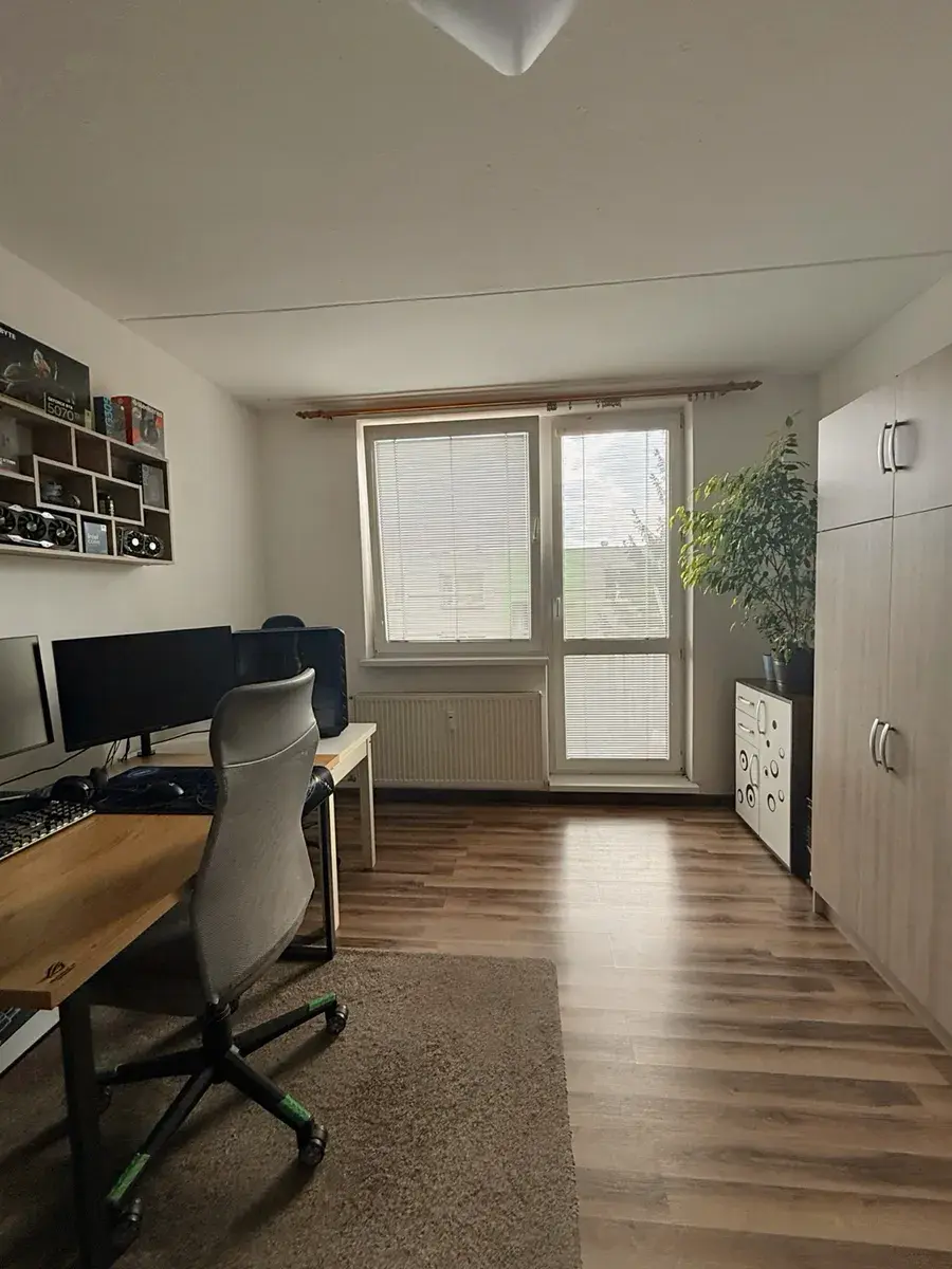 Užitná plocha 32 m2, k bytu náleží také balkón o ploše 3 m2 + sklepní kóje 3 m2. Byt je v osobním vlastnictví a je k nastěhování od 1. května 2026. Cena nájmu je 8000 Kč měsíčně + náklady (voda, elektřina, topení, fond oprav) 4 000,- Kč.