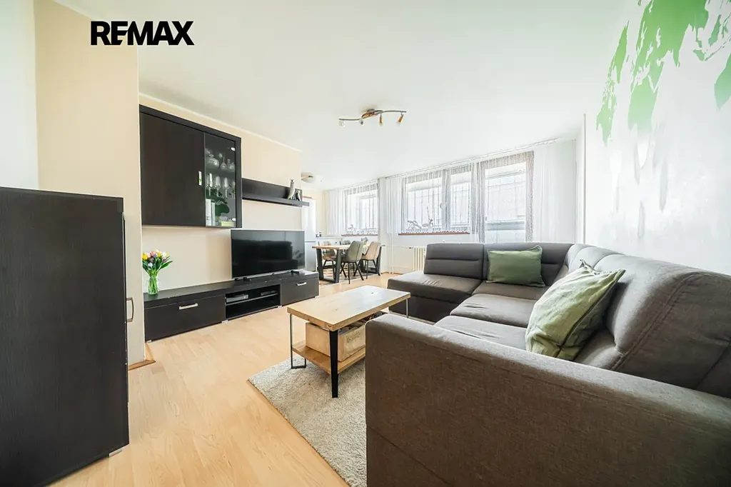 Byt je ve velmi dobrém stavu a nachází se v 6. patře bytového domu. Dům je prošel revitalizací (zateplení, fasáda, plastová okna, stoupací rozvody vody, odpadu a plynu, výtah dle norem EU). K bytu patří také sklepní kóje v suterénu domu a možnost užívání společné kolárny/kočárkárny. V letošním roce je v plánu v rámci domu rekonstrukce schodiště a chodeb. Jedná se o klidný dům s dobře fungujícím SVJ.