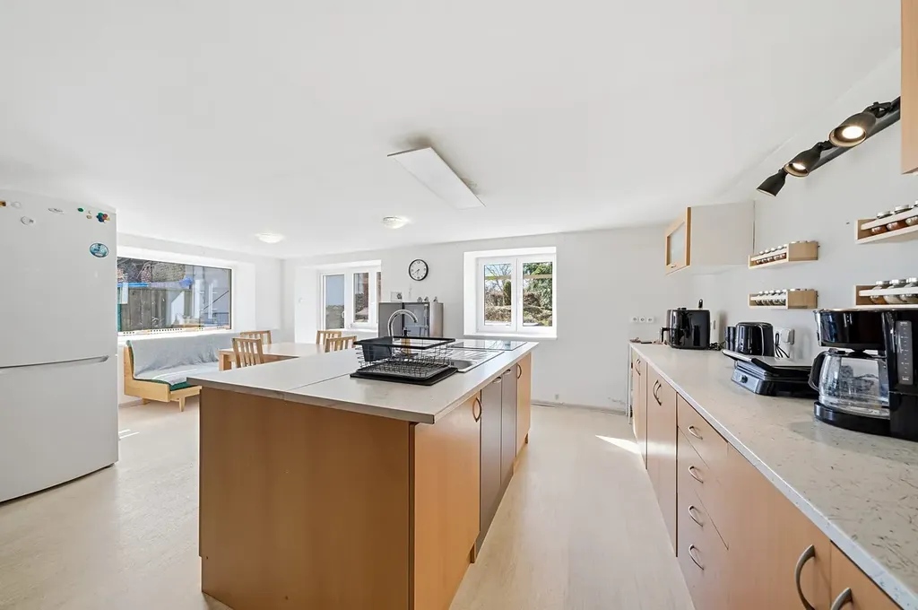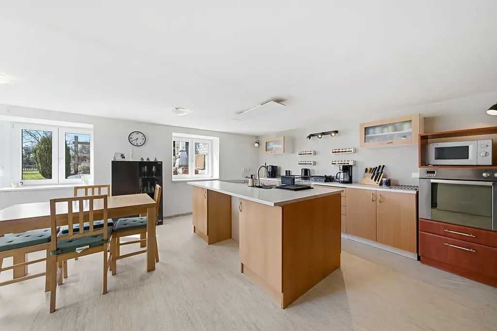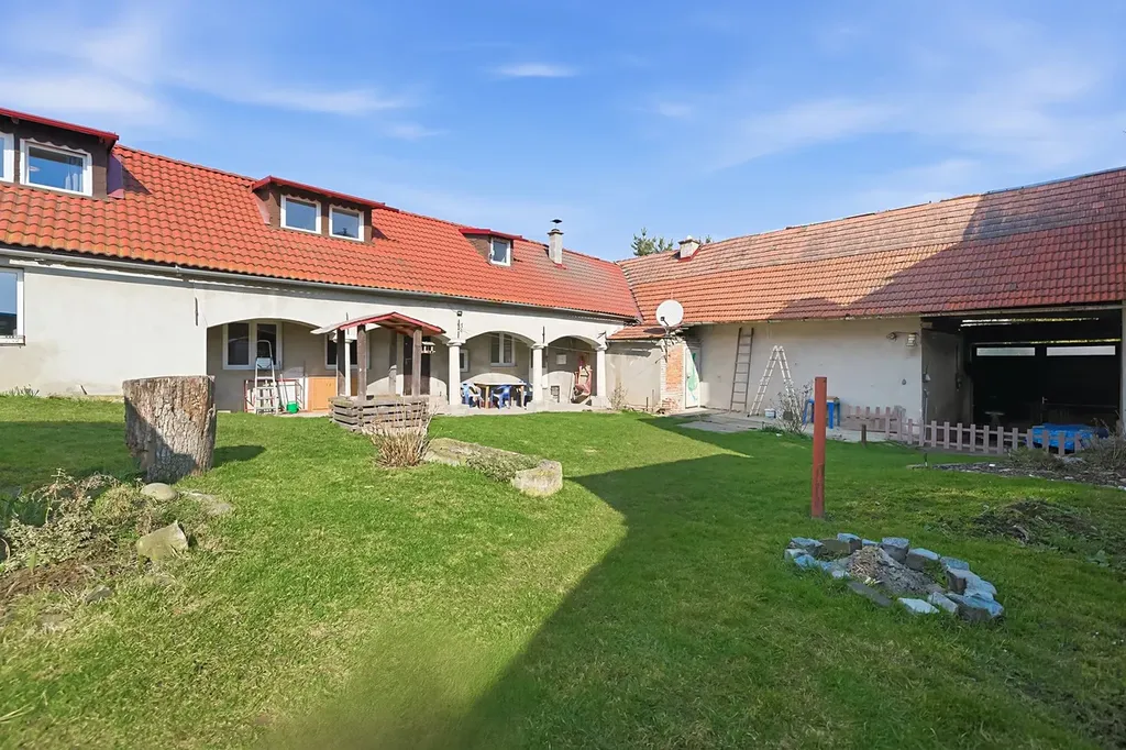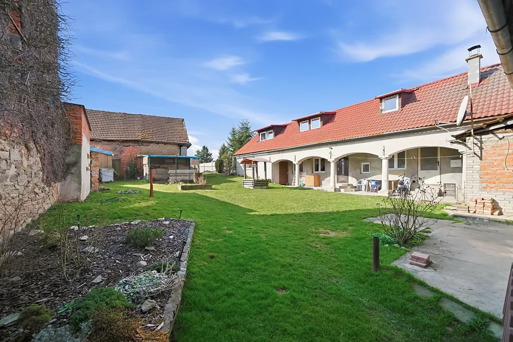Tento prostorný dům o dispozici 3+kk a celkové užitné ploše 216 m² stojí spolu se dvorem a výměnkem na pozemku o výměře 677 m². K domu dále náleží užitková zahrada o výměře 838 m² a pozemek před domem o rozloze 362 m², ideální pro zřízení okrasné předzahrádky.