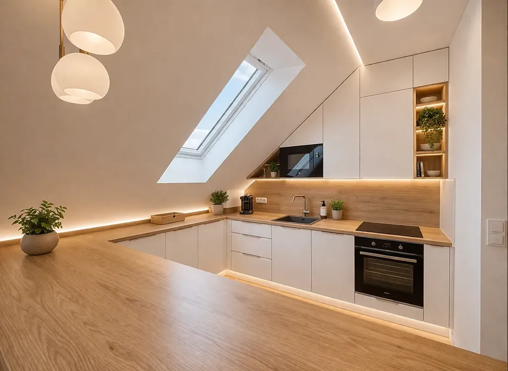 Byt splňuje nároky na moderní a komfortní bydlení ve vysokém standardu. Dominantou interiéru je designová kuchyňská linka vyrobená na míru, vybavená kvalitními vestavěnými spotřebiči – lednicí s mrazákem, indukční varnou deskou, horkovzdušnou troubou, vinotékou, myčkou nádobí a mikrovlnnou troubou.