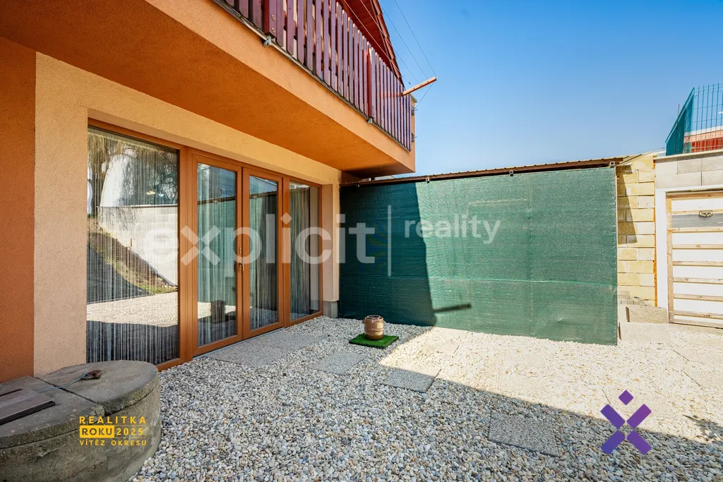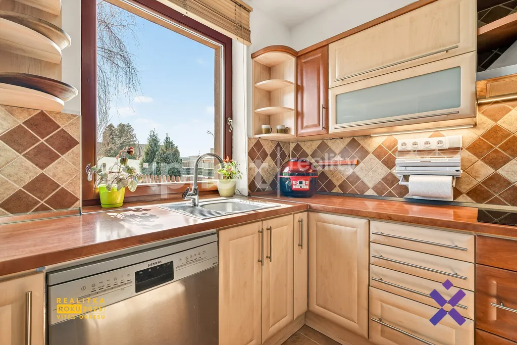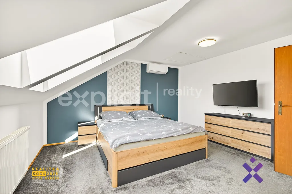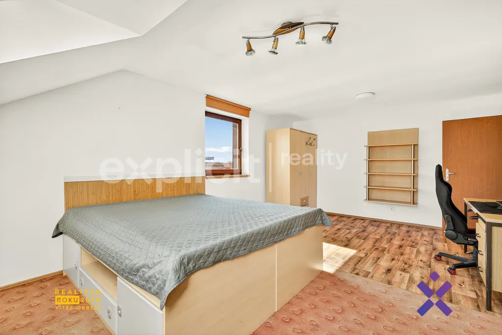 Obytná část domu je řešena velmi prakticky. V přízemí se nachází kuchyňská linka propojená s prostorným obývacím pokojem, který tvoří přirozené centrum domova. Dále zde najdete koupelnu se sprchovým koutem a toaletou. V druhém patře jsou k dispozici 3 prostorné pokoje, šatna a koupelna s vanou, což zajišťuje dostatek prostoru i pro větší rodinu. Každý pokoj v domě je navíc vybaven klimatizací, což výrazně zvyšuje komfort bydlení zejména v letních měsících. Z kuchyně je navíc přímý vstup na zastřešenou terasu navazující na velkou zahradu s bazénem. Ta nabízí ideální místo pro relaxaci, rodinné chvíle i letní posezení s přáteli. Součástí zahrady je také praktický zahradní domek pro uskladnění nářadí a sezónních věcí.