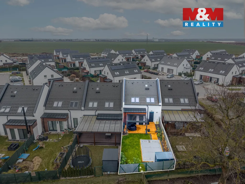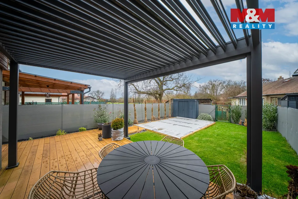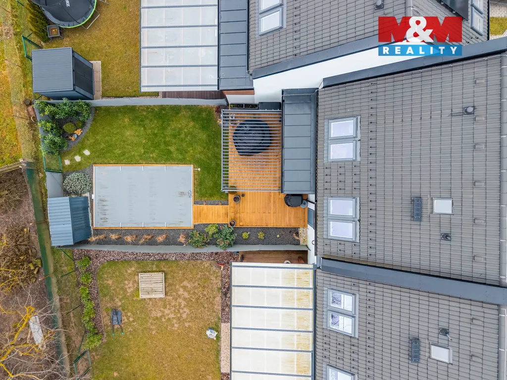 Dům je navržen s důrazem na prostor a každodenní komfort. Najdete zde vše, co potřebujete - zahradu s posezením pod pergolou, bazén se slanou vodu, fotovoltaickou elektrárnu pro nižší provozní náklady a garáž. Nad rámec standardu je podlahové vytápění, venkovní žaluzie a sítě proti hmyzu. K dispozici je také pochozí půda.