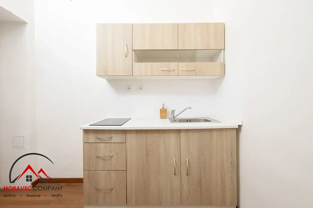 V bytě se nachází pokoj, kuchyně vybavená indukčním vařičem a koupelna se sprchovým koutem a praktickou zrcadlovou skříňkou na hygienické potřeby, WC je samostatné.