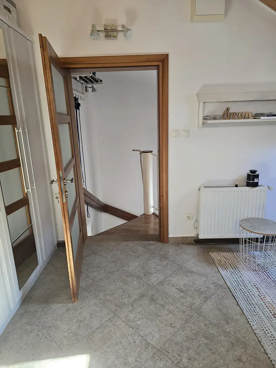 Dvoupodlažní dům o rozloze 141 m2, se dvěma samostatnými apartmány, stojí na pozemku o velikosti 400 m2. V 1. podlaží se nachází apartmán o ploše cca 50 m2, který sestává z koupelny, dvou ložnic, kuchyně s jídelnou a obývacího pokoje s přístupem na krytou terasu o rozloze 17 m2 s otevřeným výhledem na moře a pláž. V druhém podlaží se nachází druhý identický apartmán s vlastním vchodem z boku domu. K domu náleží sklep o rozloze přibližně 12 m2, garáž o rozloze 15 m2, další parkovací místo pro několik aut na dvoře. Dvůr je prostorný s palmami a borovicemi, které poskytují příjemný stín. Na dvoře je zastřešená letní kuchyň, gril, venkovní sprchy. Dům poskytuje maximální pohodlí pro ideální pobyt a trávení volného času. Velkou výhodou je i možnost kotvení lodě až do délky 12 metrů přímo před domem. Dům je klimatizovaný a obchody a restaurace jsou vzdálené pár minut chůze od domu. Dům je vhodný k celoročnímu bydlení i na pronájem.