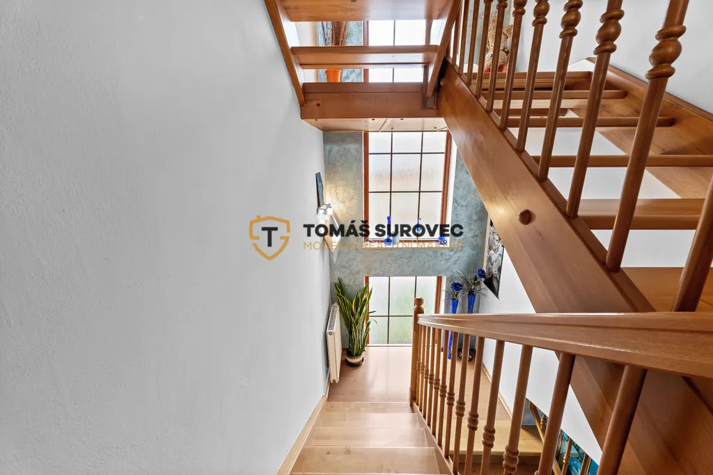 Suterén rozšiřuje možnosti domu o relaxační zázemí se soláriem a sprchou, dále zde najdete prádelnu, garáž a praktický přímý vstup na zahradu. Dům prošel částečnou rekonstrukcí, je vybaven eurookny a je připraven k okamžitému bydlení bez nutnosti dalších zásahů.
