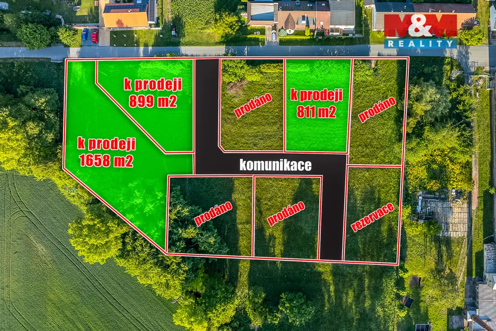 V ceně pozemku jsou kompletní inženýrské sítě (elektřina, veřejný vodovod a kanalizace) a nově vybudovaná komunikace.