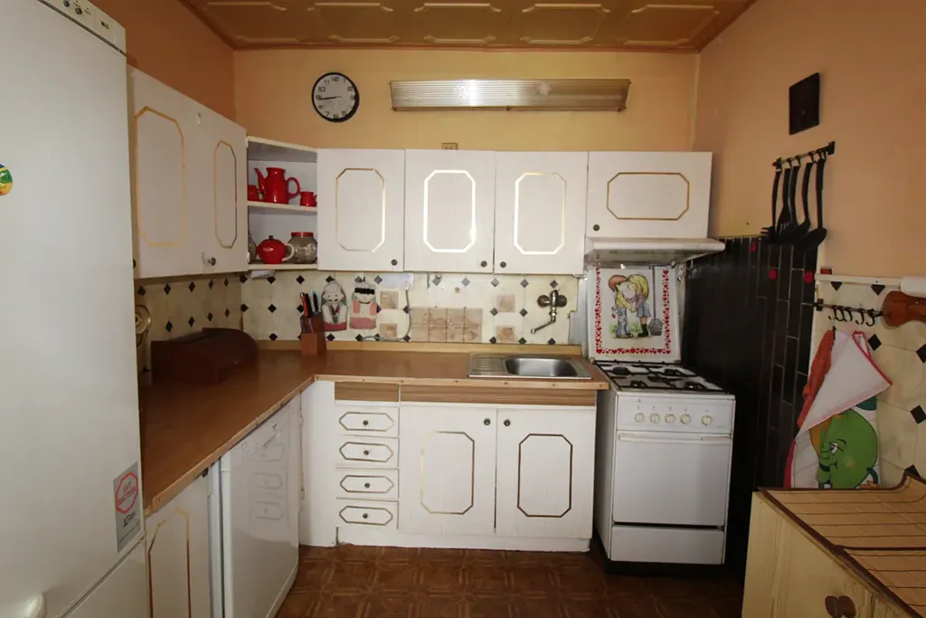 Bytové jádro je v původním stavu, vhodné k rekonstrukci dle vlastních představ. V suterénu domu je dále k dispozici kolárna a kočárkárna.