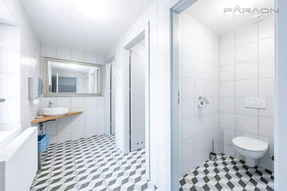 Kancelářské prostory jsou po rekonstrukci ve velmi dobrém stavu a vhodné k okamžitému užívání. Součást vybavení zahrnuje pracovní stoly s uzamykatelnými skříňkami, židle, kuchyně s myčkou, mikrovlnou troubou, lednicí a mrazákem. Za poplatek k dispozici i prostorná skladová část v suterénu. Dále samostatné toalety s umyvadlem.