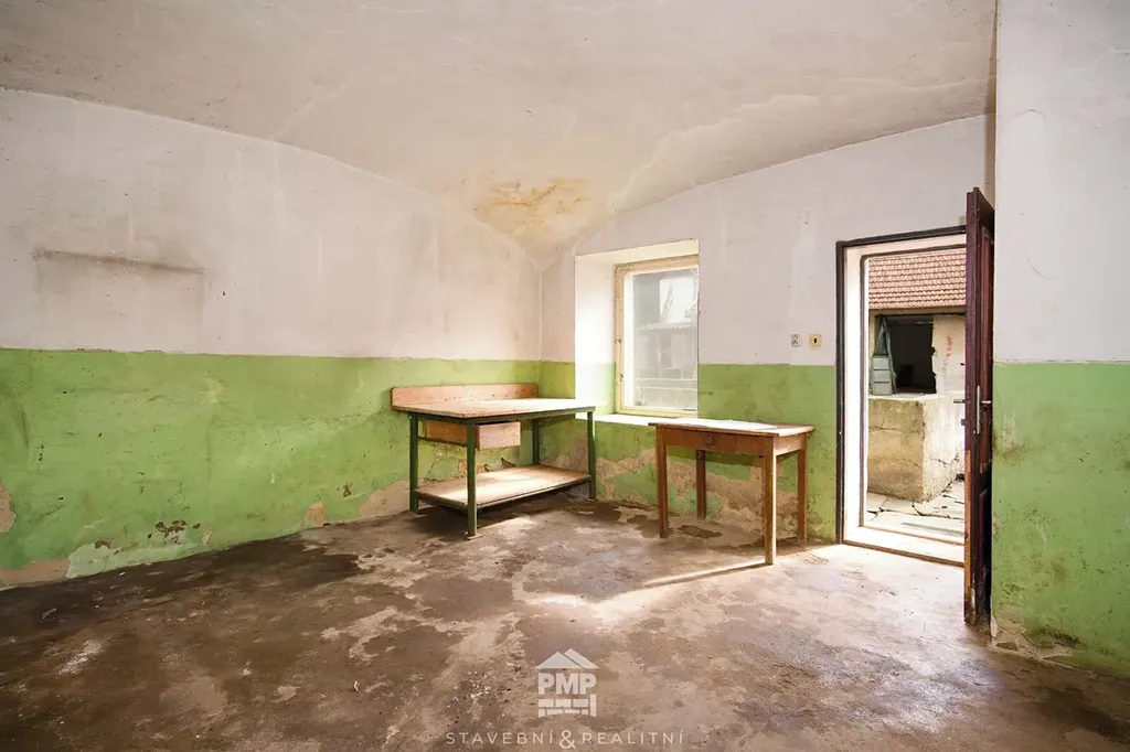 Dispozičně se tato nemovitost skládá ze dvou obytných částí a hospodářských prostor. Rodinný dům i výměnek se samostatným vchodem z uzavřeného dvora mají dispozici 2+1. Rozsáhlé půdní prostory se nabízí k rozšíření obytné zóny domu. Hospodářská část nemovitosti zahrnuje dvě prostorné garáže, stodolu, stáj, chlév a černou kuchyni. Za domem Vás čeká krásná zahrada (2.066 m²), která nabízí velkorysý prostor pro pěstování vlastní zeleniny, ovoce nebo dokonce k chovu drobného zvířectva. Do zahrady se dostanete ze dvora, který zajišťuje naprosté soukromí, nebo branou na konci pozemku s přístupem z obecní nezpevněné cesty. Energetická náročnost budovy: třída G.