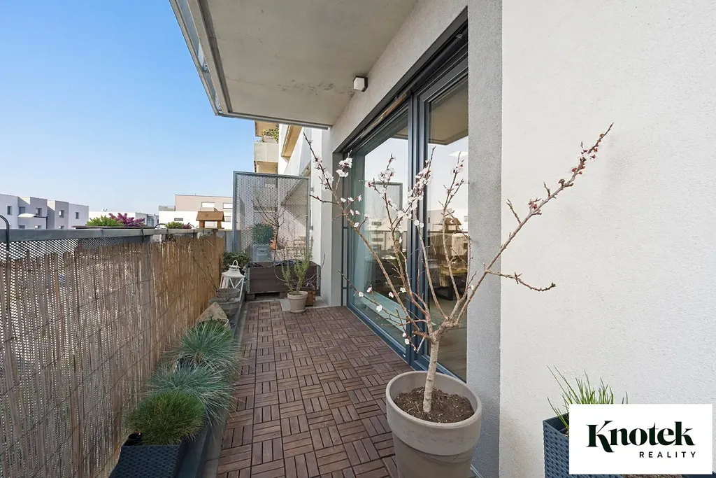 Byt o dispozici 2+kk má užitnou plochu 55,6 m² a patří k němu i nadstandardně velká terasa o výměře 69,6 m².