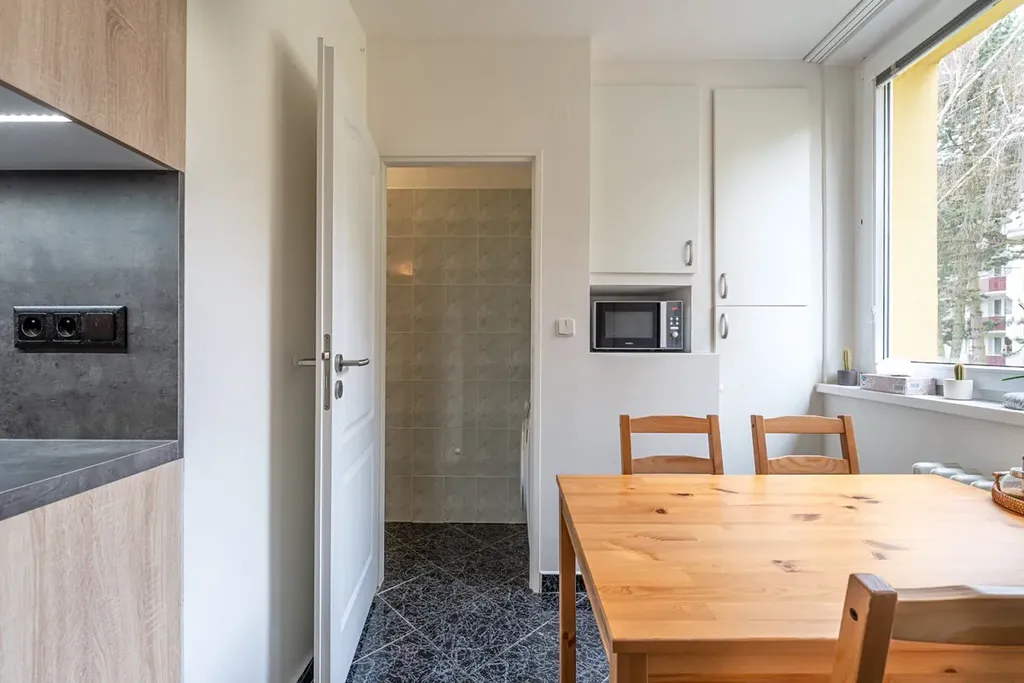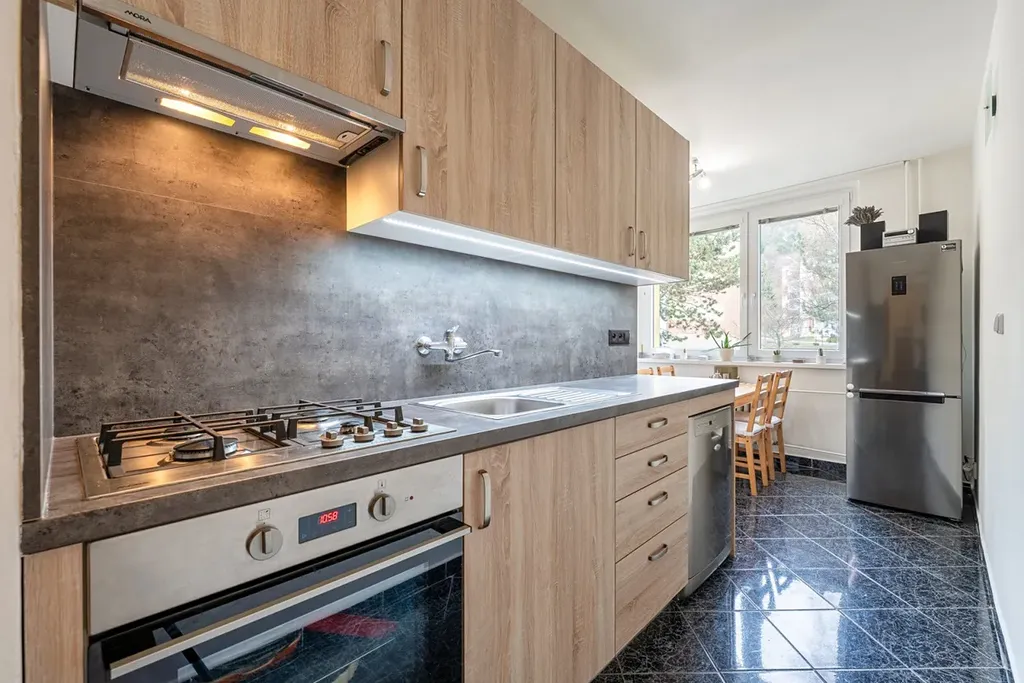 Velkou výhodou je nové bytové jádro a nízké měsíční náklady ve výši 5.464 Kč včetně elektřiny, plynu i fondu oprav.