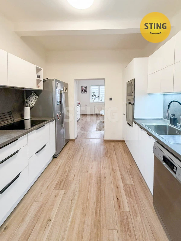 Rodinný dům o velikosti 5+1 se nachází v Albrechticích u Českého Těšína. V přízemí domu se je zádveří, vstup do koupelny, kuchyně a do pokojů. V roce 2023 proběhla rekonstrukce kuchyně a obývacího pokoje (podlahy, omítky, elektřina, kuchyňská linka včetně spotřebičů). Schodištěm se dostaneme do 2NP. kde se nachází tři pokoje, prostorná bezbariérová koupelna s masážní vanou a umývadlem, WC. Přístup do patra je také zajištěn výtahem, v jednom pokoji je voda i odpady – možno využít jako kuchyni. Na domě proběhly tyto rekonstrukce – v roce 2024 zateplení střechy – Climatizer Plus 40cm, vjezdová brána na dálkové ovládání, střešní krytina (krovy, desky – dle potřeby, garáž komplet s krovy) – střešní krytina (2007), okna plast (2007), voda plast, z jedné části odrenážování domu i garáže, izolace garáže, plynový kotel (2019). Vytápění domu je řešeno plynovým kotlem, ohřev vody – koupelny bojler na elektřinu, kuchyně průtokový ohřívač. Dům je z 3/4 podsklepen – zde jsou technické místnosti. Nemovitost napojena na vodovodní řád, kanalizaci, plyn, k dispozici je studna. Zastavěná plocha domu činí 263m2 i s garáží. Garáž má k dispozici půdní prostor, kde je možno vybudovat pracovnu, dílnu. K domu náleží zahrada o výměře 369m2, kde jsou umístěny okrasné i ovocné křoviny. Škola, školka v blízkosti. Přístup z obecní cesty. Nemovitost se nachází v blízkosti Těrlické přehrady (pěší chůzí), kde je možno využití volnočasových aktivit (rybolov, vodní lyžování ). Velmi dobrá dostupnost do Havířova, Karviné či Českého Těšína. Do konce dubna 2026 nabízíme prostřednictvím našeho partnera úrokové sazby od 4,69 % p.a. Více informací Vám sdělí náš specialista na prohlídce.