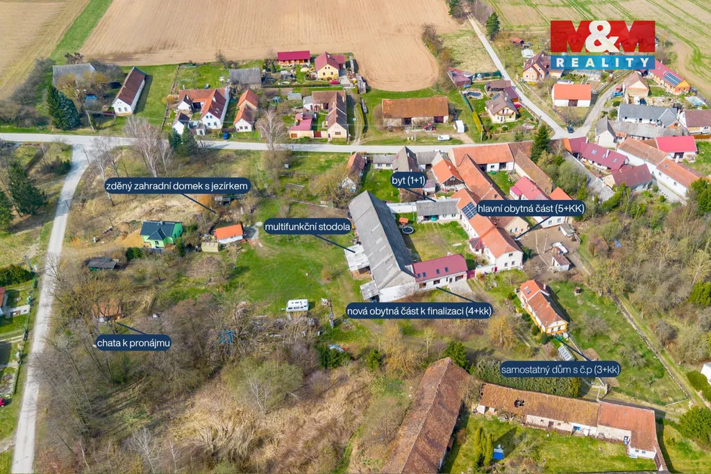 Nabízíme unikátní areál s uzavřeným dvorem a několika budovami, vhodný pro vícegenerační bydlení, podnikání, workshopy, pořádání svateb či pro hospodářské využití.