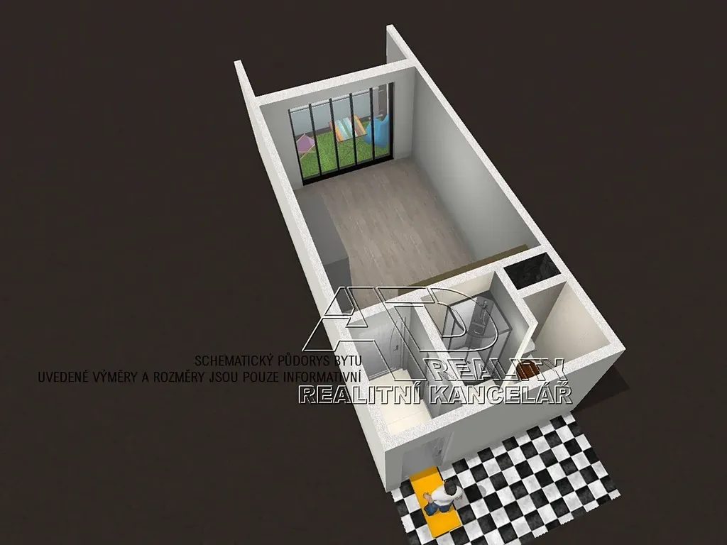 Celková užitná plocha bytu [28m2], podlahová plocha bytu [23m2] + lodžie [4,1m2] + sklepní koje cca [1m2].