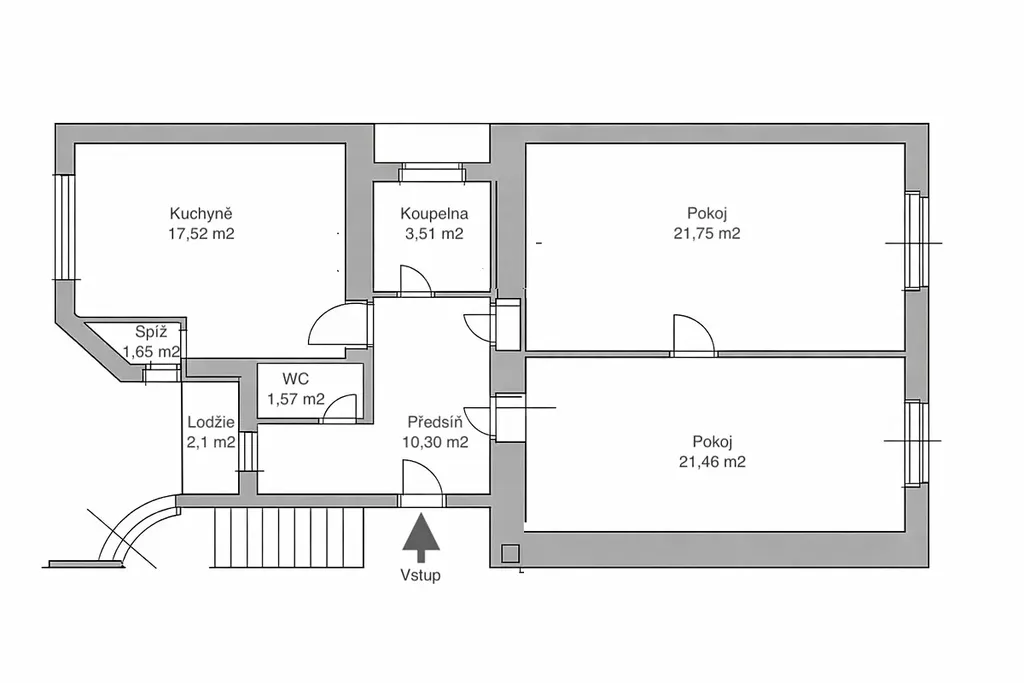 Dispozice bytu umožňuje jednoduchou úpravu na moderní 3+kk.