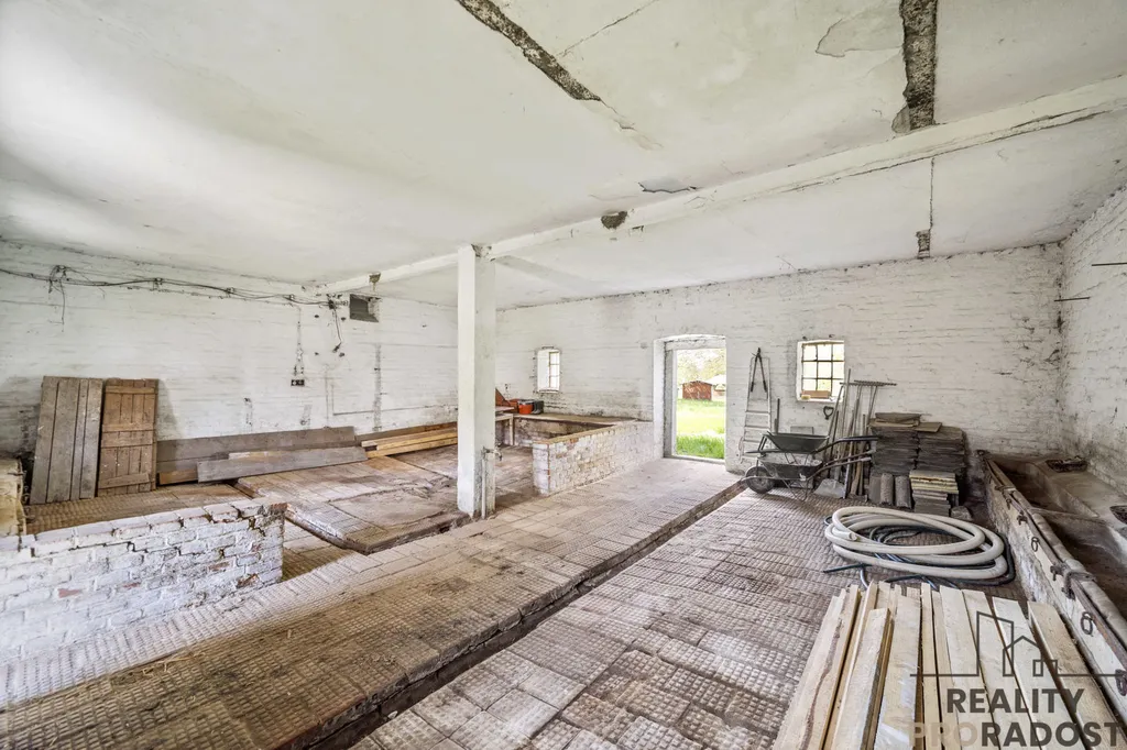 Stodola je zachovalá a lze ji předělat na objekt k rekreaci či k podnikání.