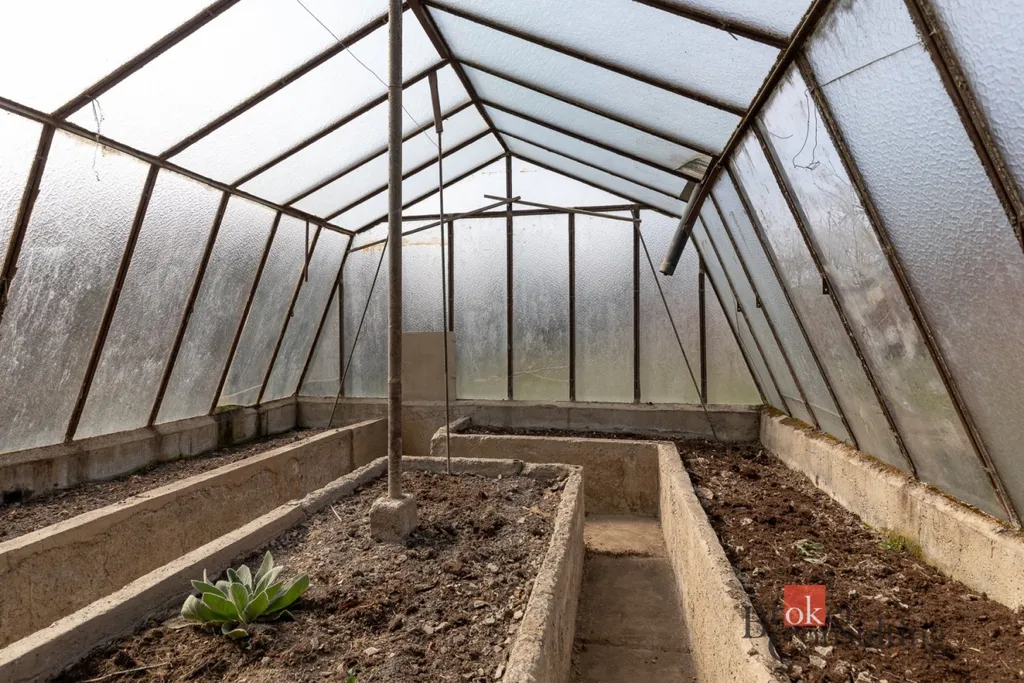 Zahrada je rovinatá, pečlivě udržovaná a osázená ovocnými stromy. Nechybí skleník pro pěstování vlastní zeleniny ani prostor pro zahradničení.