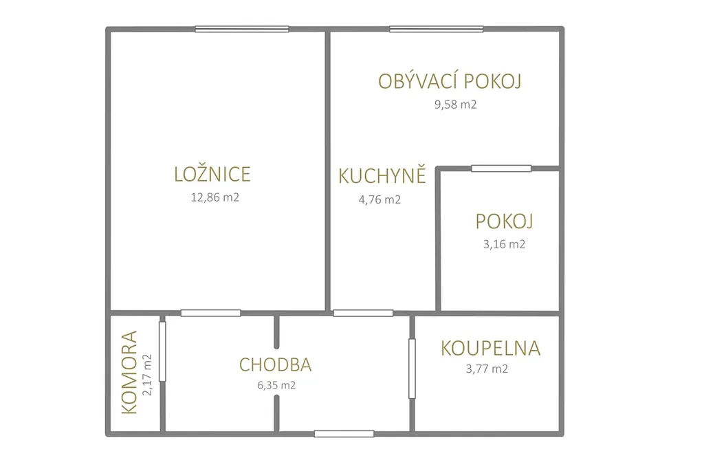K bytu náleží sklepní kóje a velkým benefitem je také kočárkárna přímo na patře, což výrazně zvyšuje komfort každodenního užívání.