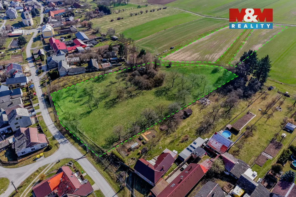 1. Pozemek o výměře 7 780 m2, který se nachází v proluce mezi rodinnými domy. Z tohoto pozemku je 4 842 m2 dle územního plánu určeno k bydlení vesnickému (BV). Zde je možno umístit až 6 rodinných domů. Přístup po obecní zpevněné komunikaci. Elektřina na hranici pozemku, kanalizace vede v komunikaci, veřejný vodovod po druhé straně silnice.