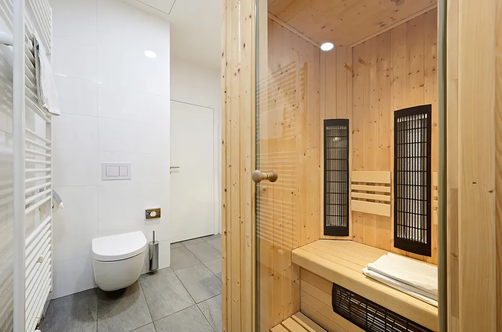 • Exkluzivní výbava: Přímo v apartmánu se nachází vlastní sauna pro dokonalé soukromí a relaxaci po dni na sjezdovce a prostorná šatna, která je uzamykatelná a zajišťuje tak komfortní úložný prostor osobních věcí.