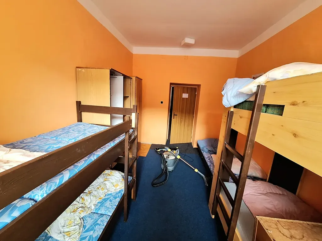 1.PP - 7 ubytovacích jednotek (pokojů), sprchy, WC, společenská místnost, dále garáže přístupné z pozemku budovy, sklady, trafostanice.