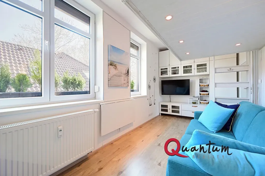 Byt sestává ze vstupní chodby, koupelny se sprchovým koutem, toaletou a umyvadlem a hlavní obytné místnosti s kuchyňským koutem. Velkou výhodou je orientace na jihovýchod, která zajišťuje dostatek denního světla po většinu dne. Komfort bydlení dále zvyšují okenní rolety.