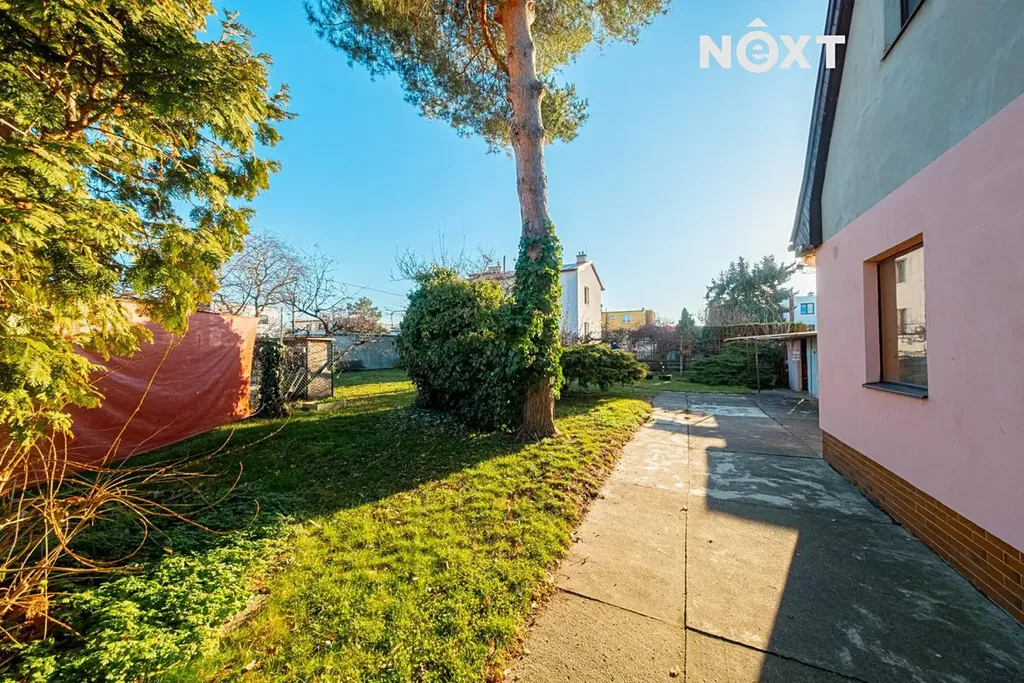 K rodinnému domu náleží udržovaná zahrada s posezením, která poskytuje klidné prostředí pro relaxaci. Na pozemku se nachází vzrostlé stromy a travnaté plochy, které zajišťují dostatek soukromí.
