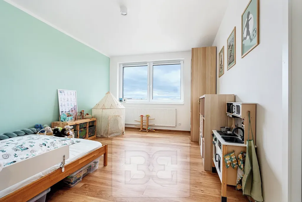 Nabízíme Vám k prodeji byt 4+kk s obytnou plochou 119,1 m² situovaný v 10.NP domu, na adrese náměstí Olgy Scheinpflugové. Byt se sestává ze vstupní chodby s vestavnou skříní, ložnice s prostornou šatnou, koupelnou se sprchovým koutem a toaletou, dětského pokoje, pracovny, samostatné toalety, komory, koupelny s vanou dominantou celého bytu, prostorného obývacího pokoje s kuchyňským koutem plně vybaveným vestavnými spotřebiči. Z pokoje lze vejít na zasklený balkón 10,6 m². Orientace bytu je severo západní. V oknech na západ předkokenní elektrické rolety. K bytu náleží 2x garážové stání - místa jsou vedle sebe a sklep.
