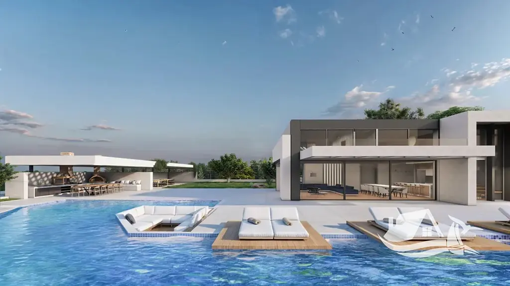 Dominantou exteriéru je velkorysý bazén o ploše 160 m², který spolu s terasami vytváří ideální prostor pro relaxaci, odpočinek i společenské chvíle. Z vil se otevírají úchvatné výhledy na moře, město Chania i okolní pobřeží, které si můžete vychutnávat od východu až po západ slunce.