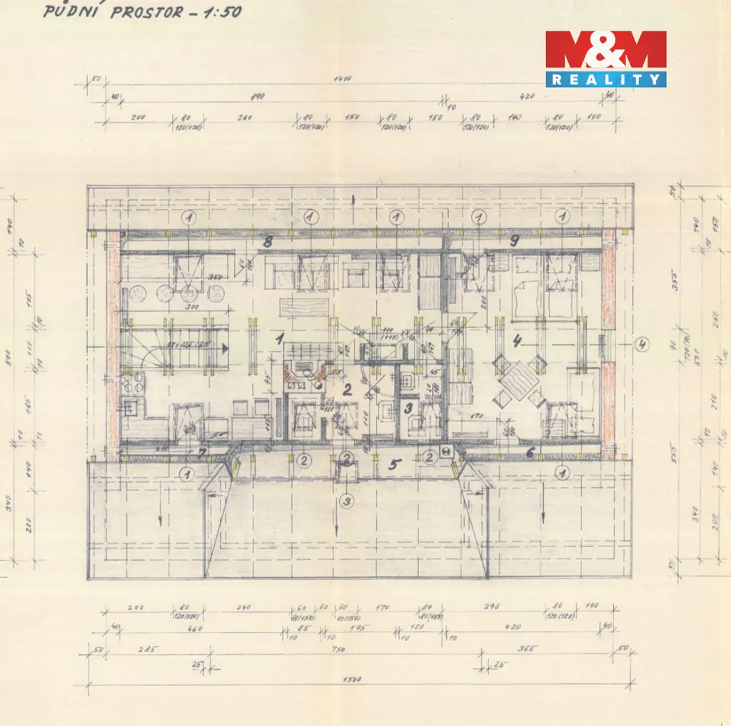 Součástí domu je také obytná půda o velikosti cca 50 m².