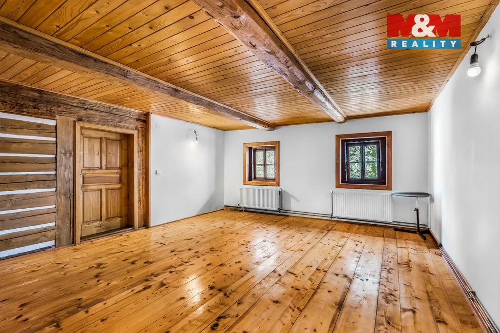 Chalupa si zachovává charakter tradiční severočeské roubené architektury – masivní dřevěná konstrukce, přiznané trámy, dřevěné podlahy a citlivě provedené úpravy. Interiéry jsou udržované, funkční a připravené k okamžitému užívání. Je zde technická místnost s moderním peletovým kotlem a historický kamenný sklep, typický pro stavby tohoto stáří.