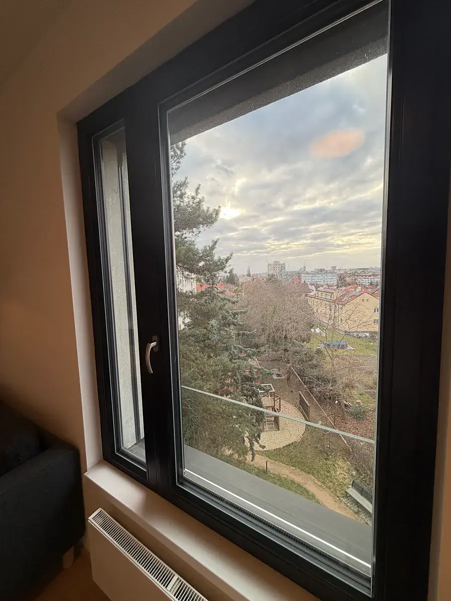 Velkým benefitem je západní orientace bytu, která zajišťuje dostatek přirozeného světla v odpoledních hodinách. Komfort bydlení dále zvyšují předokenní žaluzie, které umožňují regulaci světla i soukromí.