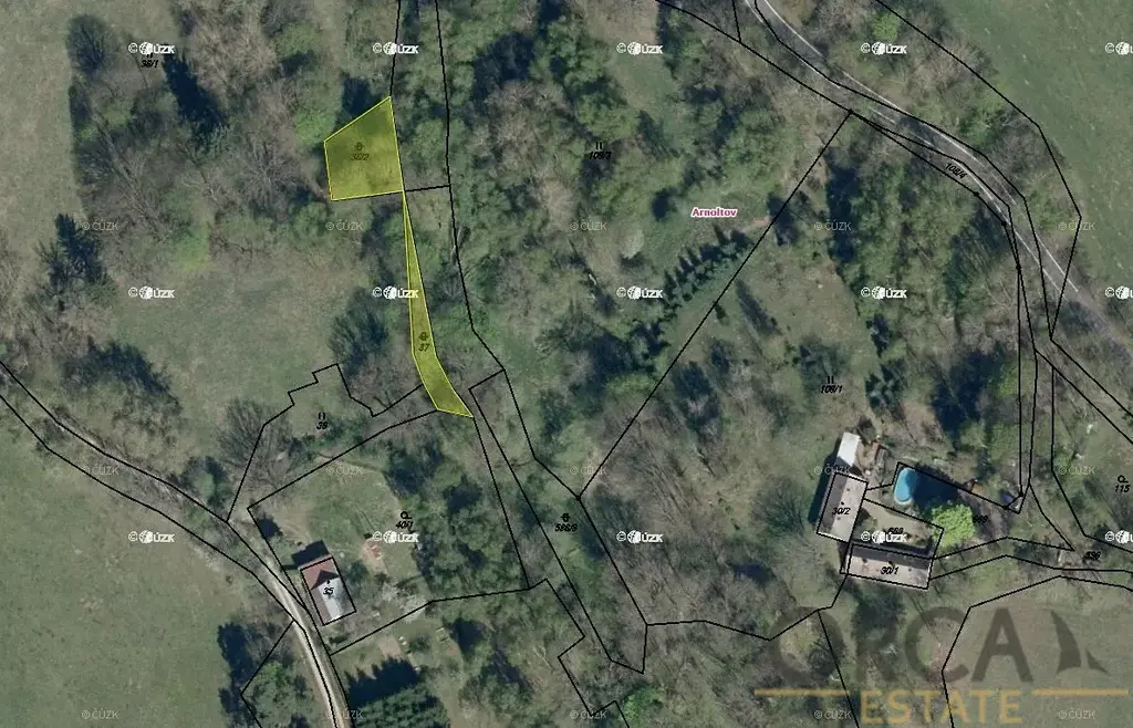 Nabízíme k prodeji dva pozemky ve výlučném vlastnictví v k.ú. Arnoltov, okres Sokolov. Jedná se o parcelu č. 37 o šířce cca 6 m a parcelu č. 36/2 o šířce cca 19m. Pozemky mají celkovou výměru 599 m2. Dle katastru jsou evidovány jako ostatní plocha, nacházejí se přímo v obci a dle územního plánu se jedná o plochu bydlení a plochu přírodní. Na pozemcích není sjednána žádná pachtovní smlouva.
