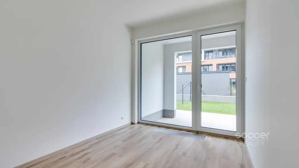 Byt se nachází v úplně nové výstavbě, která klade důraz na vysoký standard a pohodlí. V bytě se nachází nadstandardní kuchyňská linka, praktická komora s přípravou na pračku, koupelna se sprchovým koutem a samostatné WC. Ložnice i obývací pokoj mají přímý vstup na terasu a do předzahrádky, což bytu dodává vzdušnost a propojení s venkovním prostorem.