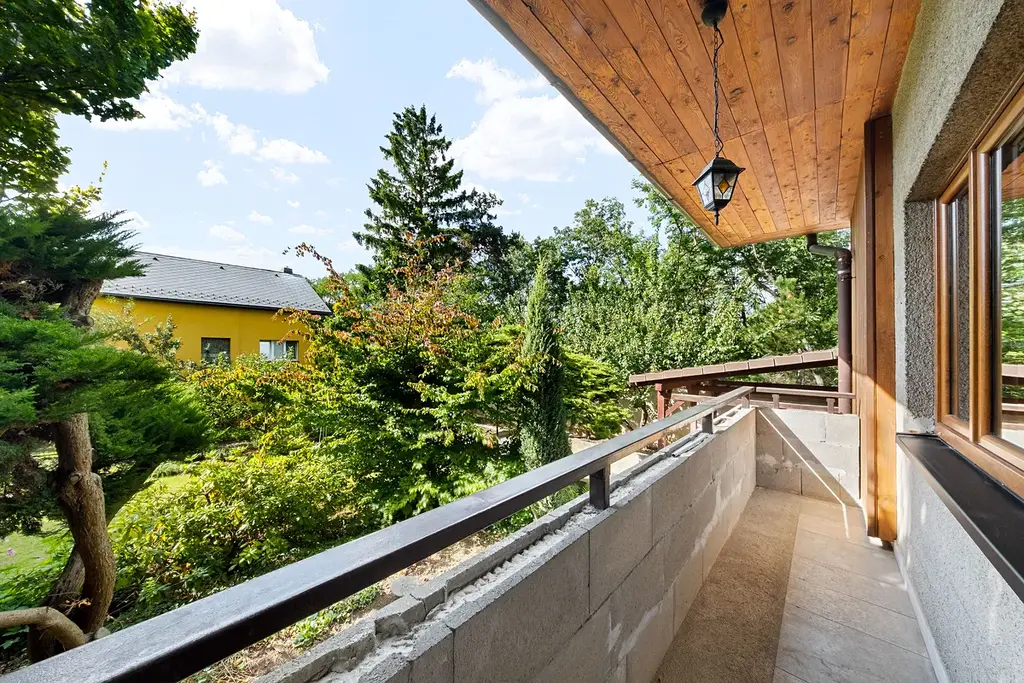Rozlehlý pozemek a umístění domu s přístavbou na pozemku dává možnost dalšího využití, přestavby domu.