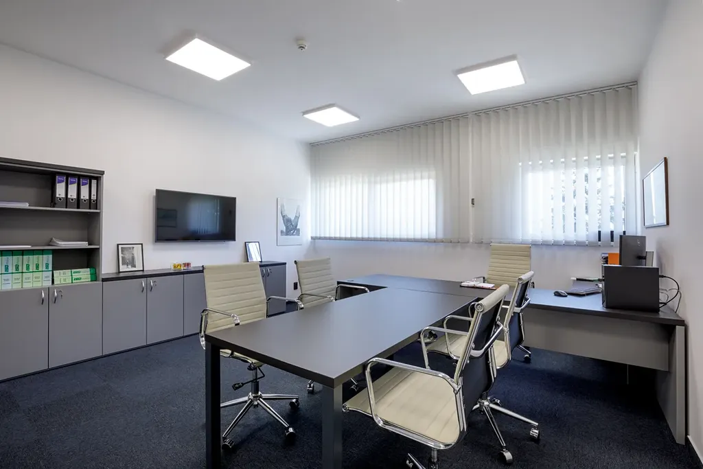 Kanceláře v ISO OFFICE PARK se nacházejí v pěti nadzemních podlaží. V rámci pronájmu můžete využít zasedací místnost, kuchyňku, sociální zařízení a všechny společné prostory.