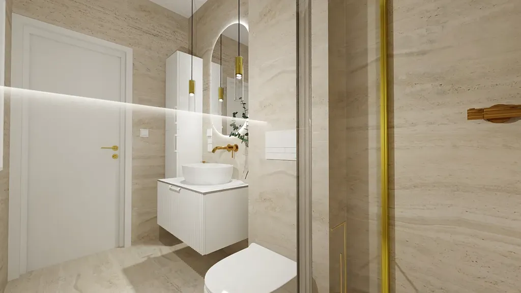 V přízemí se nachází obývací pokoj s kuchyní, jídelnou se vstupem na terasu a do zahrady. Dále dětský pokoj (popř. kancelář), koupelna a technická místnost. Přízemí je řešeno bezbariérově. V druhém podlaží se nachází manželská ložnice, dva dětské pokoje a druhá koupelna.