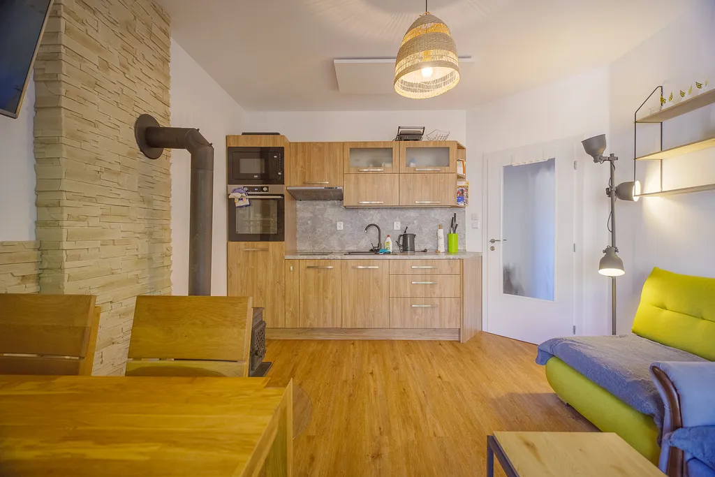 Apartmán se nachází v moderním domě (cca 2016) s pouhými 6 jednotkami, což zajišťuje dostatek soukromí a klidné prostředí.
