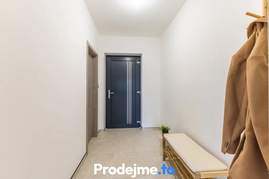 Dům nabízí skutečně velkorysý prostor a praktické dispoziční řešení! Ihned po dovnitř se ocitnete v předsíni. Z té se dostanete do přilehlé technické místnosti a do obrovského obývacího pokoje s kuchyňským koutem, který propojuje dům se všemi dalšími místnostmi. Najdete zde tak vstupy do 2 dětských pokojů, luxusně vybavené koupelny se sprchovým koutem, vanou a toaletou a vstup do ložnice. Ta díky své orientaci do zahrady zajišťuje dokonalé soukromí a podmínky pro načerpání energie. V obývacím pokoji vás také potěší francouzská okna vedoucí na rozlehlou krytou terasu se zámkovou dlažbou. Elektřina i voda je zde vyvedená v nezámrzném systému, takže ji můžete využívat celoročně. Nad domem je půda, která poskytuje dostatek místa pro uložení všech vašich nezbytností.
