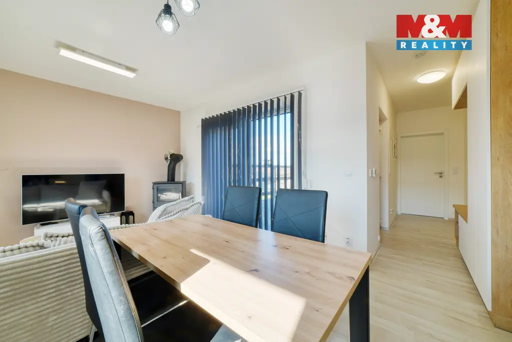 Hledáte bydlení v menším rodinném domě s prostornou zahradou? Nabízíme novostavbu (kolaudace 2022) o dispozici 3+kk, která se nachází v obci Šabina, cca 7 km od Sokolova. Jedná se o nepodsklepenou dřevostavbu s jedním nadzemním podlažím, půdorysu tvaru „L“, s otevřenou terasou o výměře 32 m², ze které je přímý vstup do domu. Dům o podlahové ploše 54,74 m² nabízí obývací pokoj s kuchyňským koutem, ložnici, samostatný pokoj a koupelnu s WC. Vytápění je řešeno kombinací elektrického podlahového vytápění a krbových kamen jako doplňkového zdroje. Komfort zvyšuje klimatizační jednotka a rekuperační jednotky v pokojích. Ohřev vody zajišťuje elektrický bojler. Na jižní straně střechy je instalován fotovoltaický systém. Z ložnice a obývací části je přímý vstup přes velká posuvná okna na terasu, ze které se nabízí krásný výhled do okolí. Parkování cca pro 3 auta je možný na zpevněné ploše. Pozemek o výměře 967 m² je mírně svažitý a má pravidelný obdélníkový tvar. V případě zájmu nás kontaktujte.