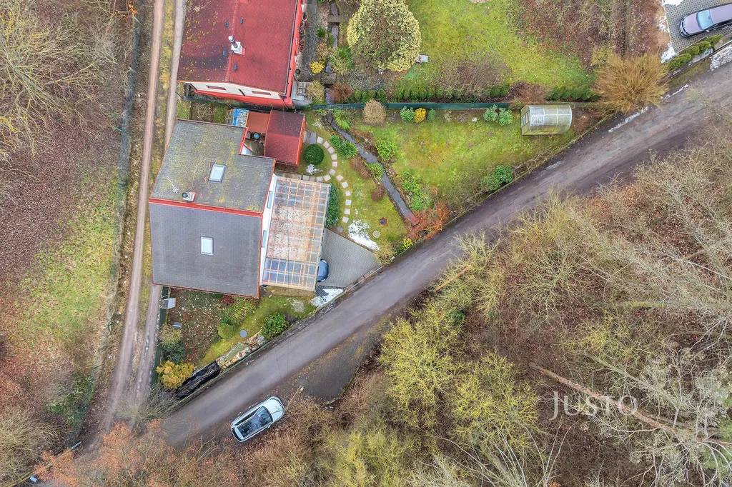 K domu náleží terasa o velikosti 22 m², která poskytuje příjemné místo k odpočinku s výhledem do udržované zahrady o rozloze 352 m². Pozemek je oplocený a nabízí dostatek soukromí. Parkování je zajištěno na vlastním pozemku. Další parkovací stání je před domem. Dům je napojen na všechny inženýrské sítě (vodovod, plynovod, veřejná kanalizace, elektřina – 3 fáze), vytápění zajišťuje tepelné čerpadlo a krbová kamna, ohřev vody je řešen tepelným čerpadlem a elektrickým bojlerem. Energetická náročnost budovy je ve třídě C – úsporná (94 kWh/m²/rok), což znamená velmi nízké provozní náklady.