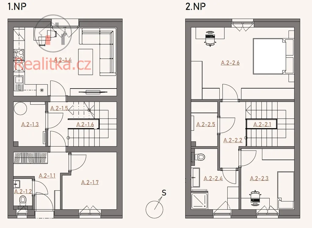 Projekt Třídomí nabízí celkem šest jednotek a dispozice domu A2 a B2 jsou následující: