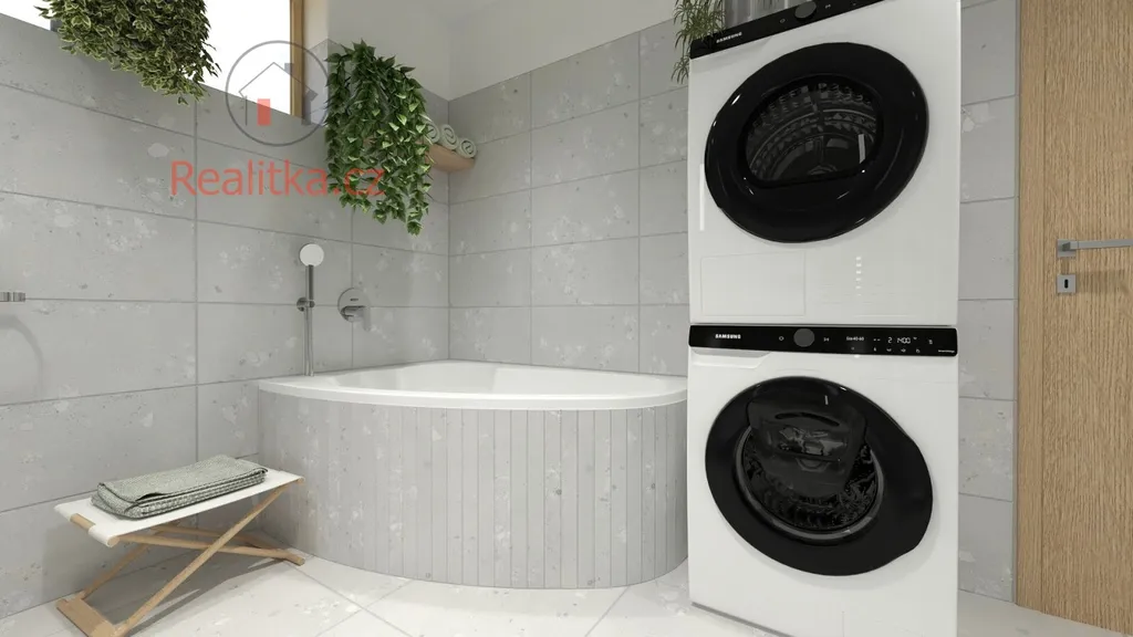 • Přízemí: Prostorná chodba, technická místnost, WC, obývací pokoj s chytře odděleným kuchyňským koutem a terasa navazující na obývací pokoj, čímž se vytváří plynulý přechod mezi interiérem a exteriérem.