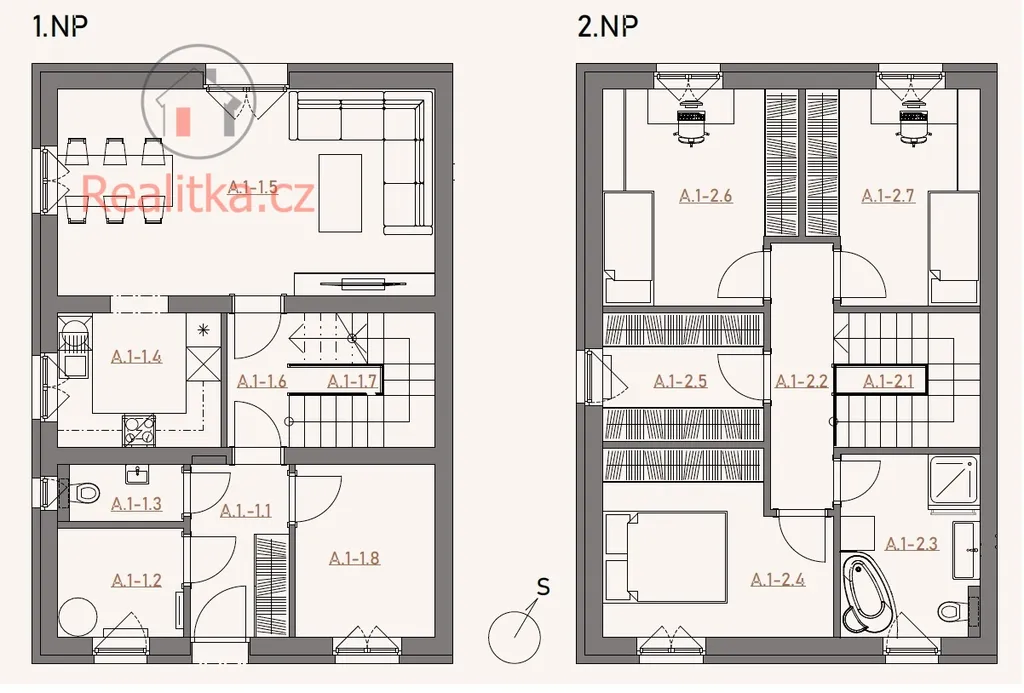 Projekt Třídomí nabízí celkem šest jednotek, dispozice bytu A1 a B1 jsou následující.