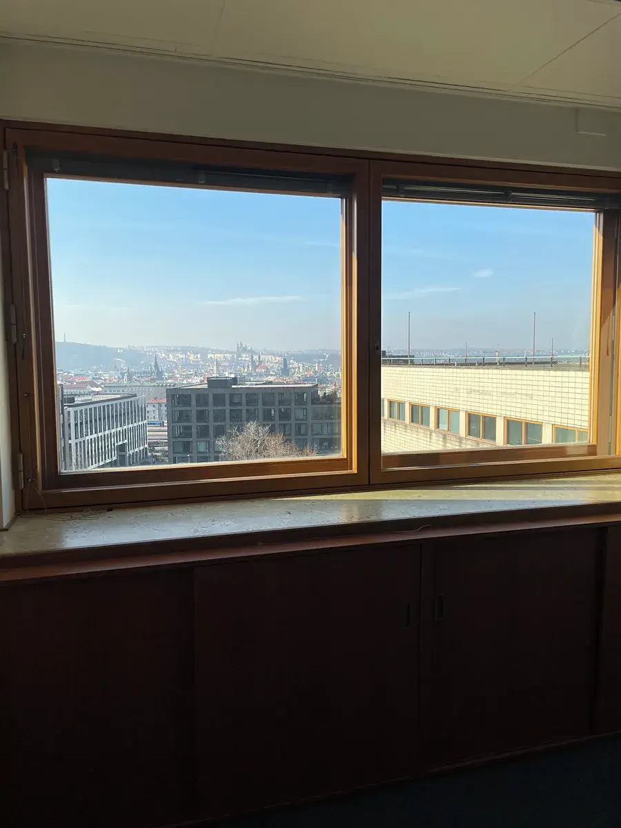 Nabízíme k pronájmu prostornou světlou kancelář 20 m2, s exklusivním výhledem na Prahu, za skvělou cenu 5.000 Kč! Kancelář se nachází v 8. NP, Dům Radost má jedinečný genius loci, skvělou dostupnost i občanskou vybavenost. V ceně pronájmu této kanceláře je k dispozici podatelna pro zasílání pošty i balíčků, coworkingové prostory v kavárně pro vaše schůzky s klienty. V Domě Radost je možnost pronájmu zasedacích prostor či prostoru kina pro vaše větší akce.